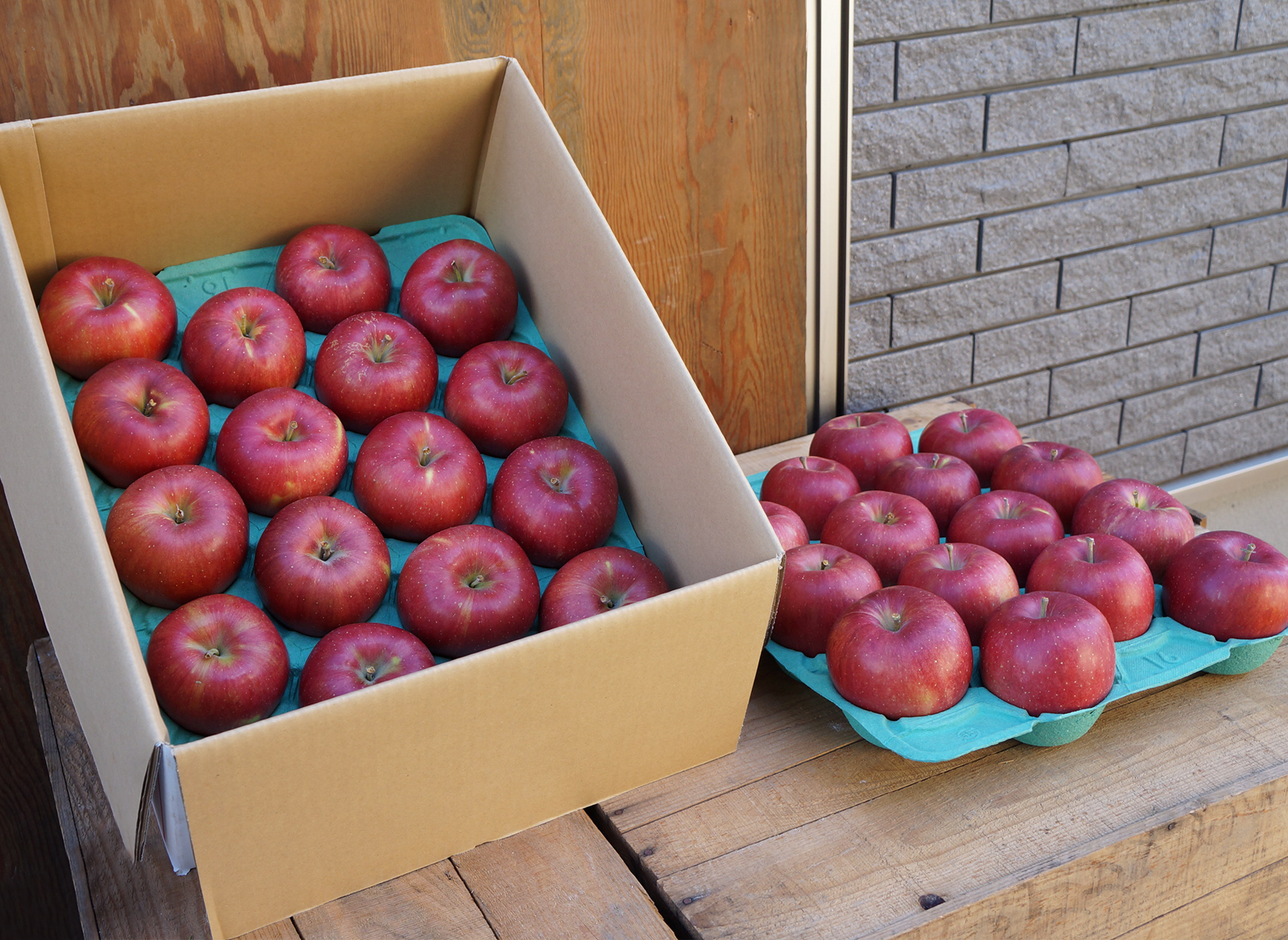 鮮やかな赤色のりんごです。