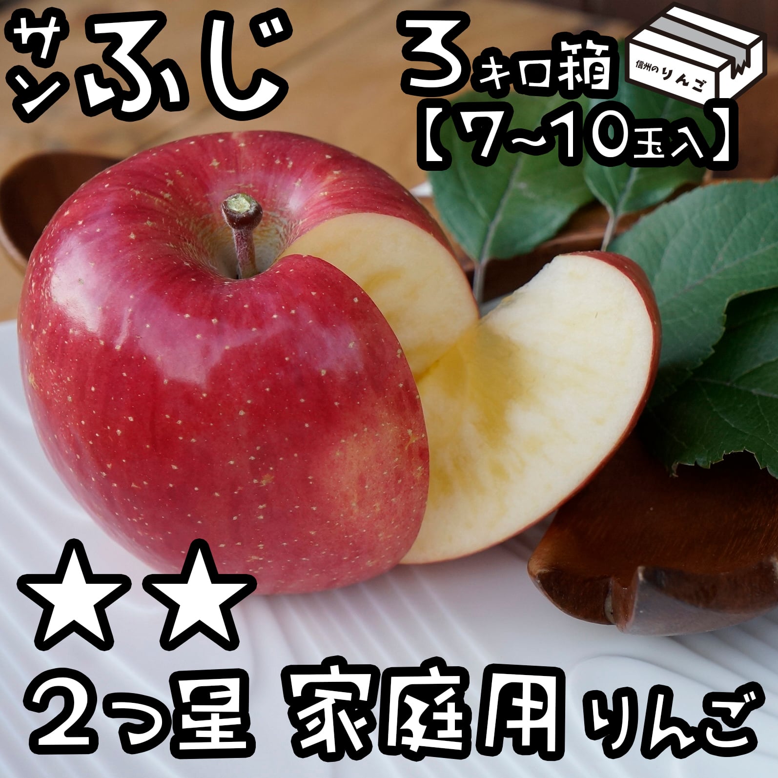 りんごサンふじ3㎏(7〜10玉)【☆☆】2つ星 家庭用