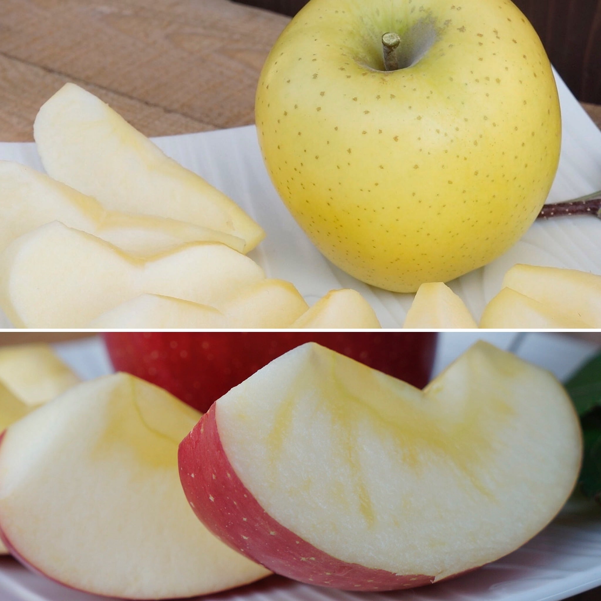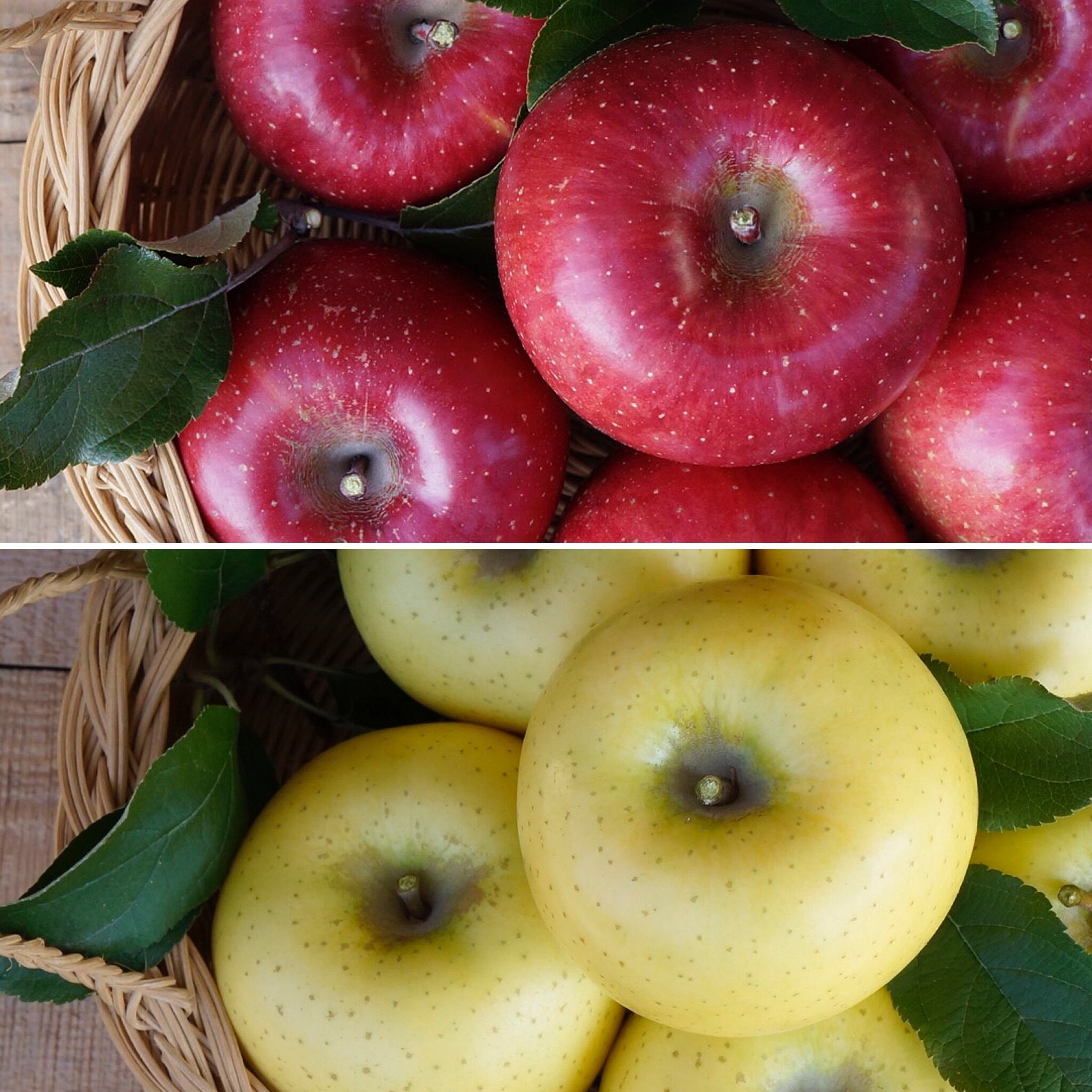 酸味がすっきりおいしいシナノゴールドの2色セット。